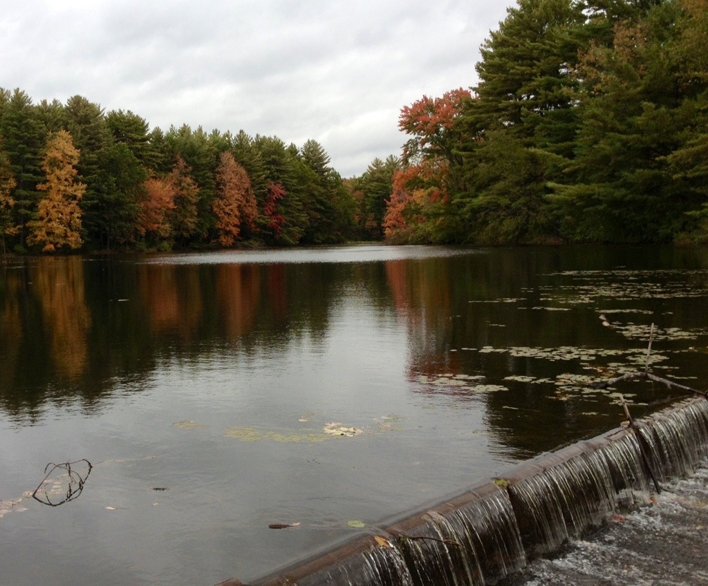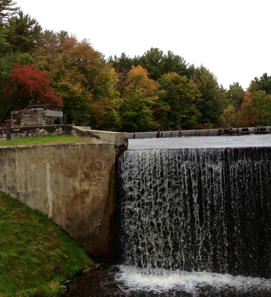 On the way to Starbucks I stopped at Miller Pond to enjoy the fall color in the woods. Because of recent rains the water was flowing over the spillway making a waterfall. The first mill on this pond was built in 1760: lumber, wood products, and flour were produced by the mills and nearby factories in Keene and Swanzey.