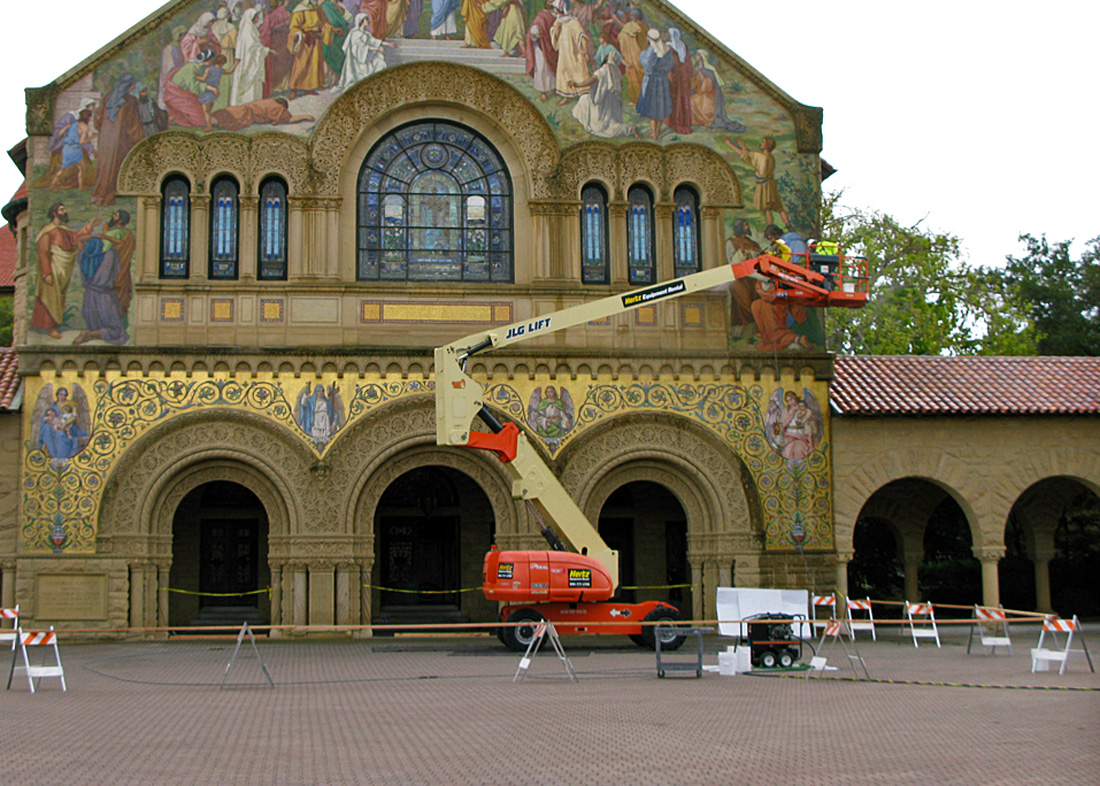 Summer Clean-up Posted on June 26, 2013 by carto Stanford’s Memorial Church is getting a summer wash up. Graduation weekend has come and gone. It’s summer on campus and time to clean-up a few things. Careful with those tiles, guys. Carto Share this: Click to email a link to a friend (Opens in new window) Email Click to share on X (Opens in new window) X Click to share on Facebook (Opens in new window) Facebook Click to share on Tumblr (Opens in new window) Tumblr Like Loading...