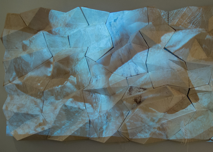 Dominating the center of the gallery, Cy Keener’s A Letter from the Sky is a project that interprets the story of rain by converting rainfall into electronic signals that are played back through strips of light emitting diodes inside a darkened aluminum box. The lights weren’t quite working when I visited, but it’s a great idea for a project.